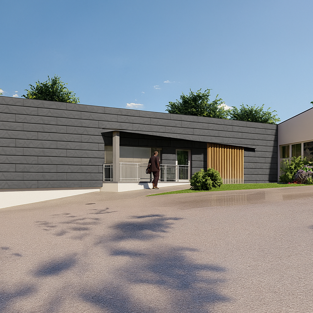 Die Farbwahl fügt sich nicht nur in die Umgebung ein, sondern stärkt auch die Identität des neuen Bauhofs als funktionaler, aber gestalterisch hochwertiger Bestandteil unserer Gemeindeinfrastruktur.